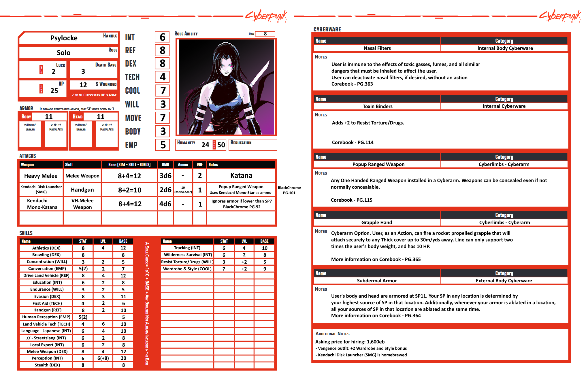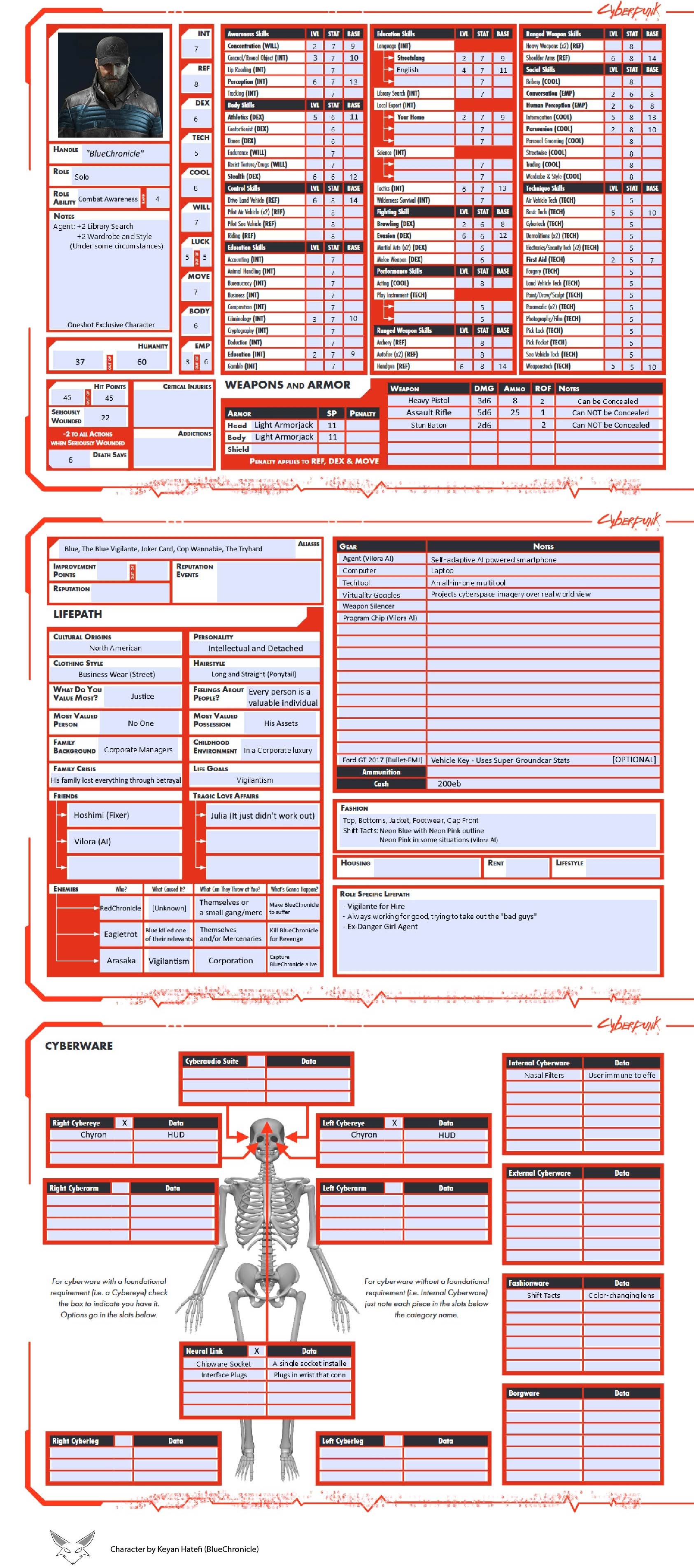 Cyberpunk Red - Keyan's Character Sheets