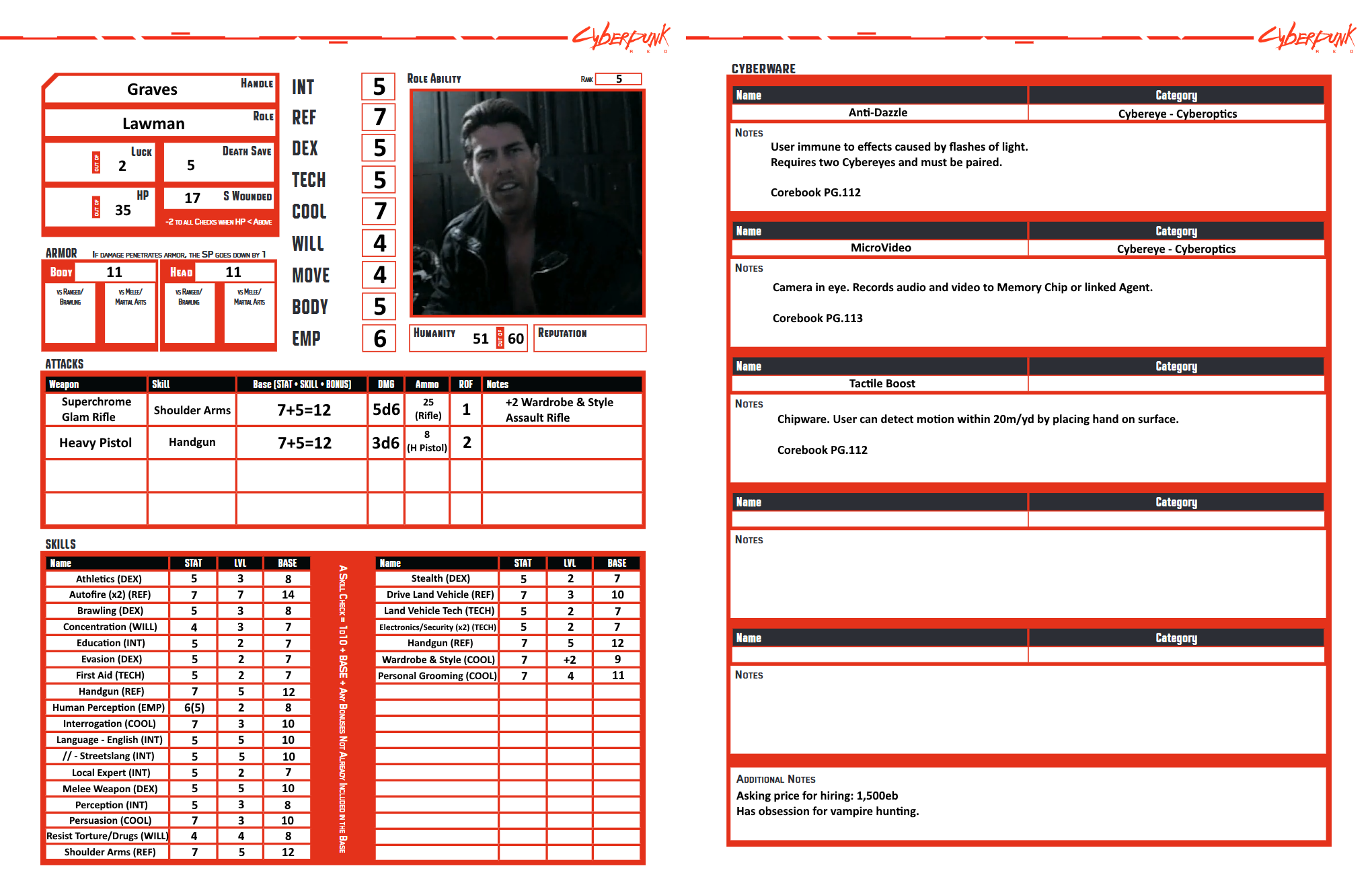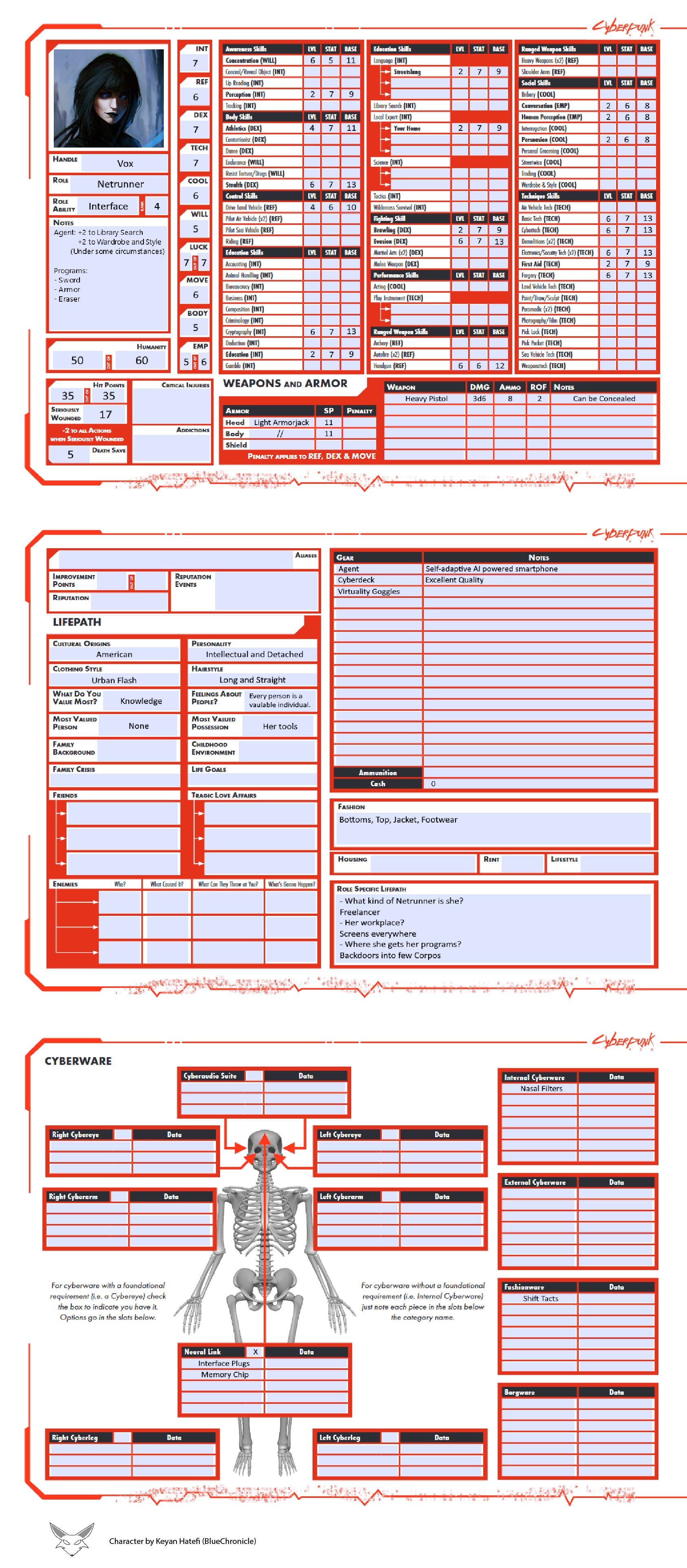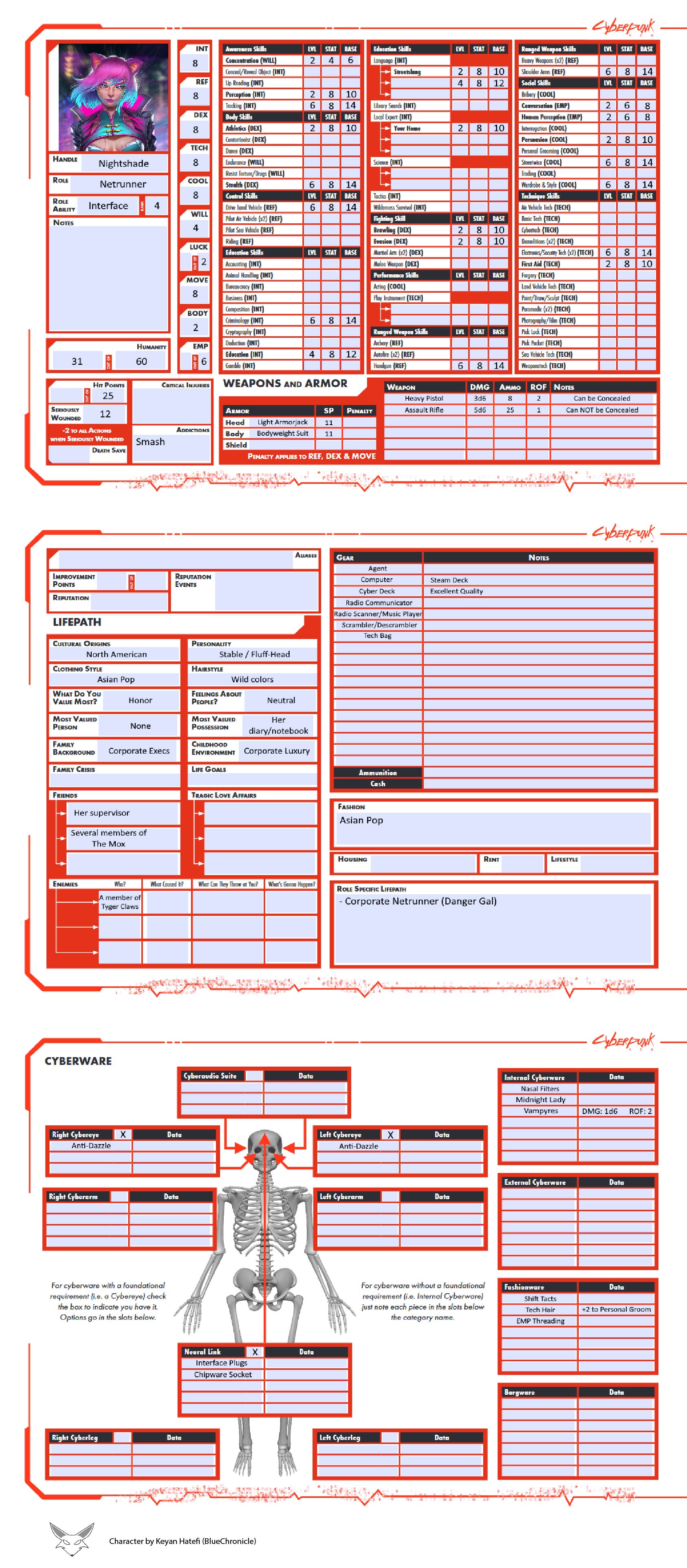 Cyberpunk Red - Keyan's Character Sheets